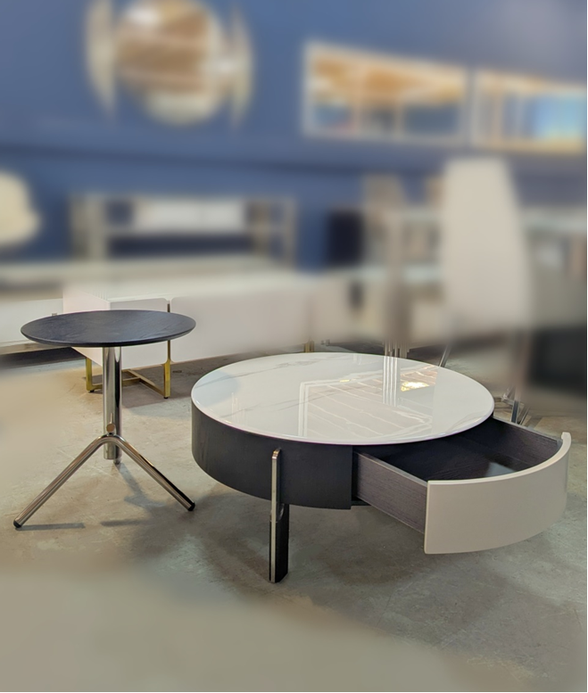 The Alina Coffee Table set beautifully blends style and practicality, making it a natural fit for modern homes. It includes a round coffee table and a matching side table, thoughtfully crafted to complement contemporary living spaces.