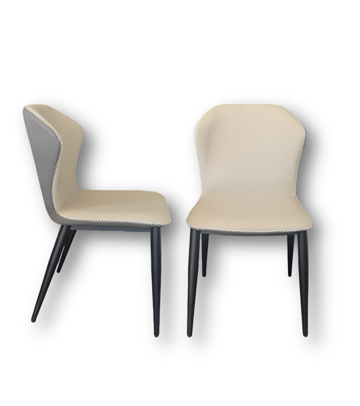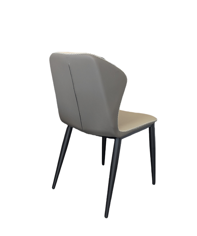 The Benita Dining Chair brings modern elegance and style to your dining space. Upholstered in PU leather with a refined two-tone design, light gray at the front and dark gray at the back, it makes a striking statement from every angle. The elegant wingback and built-in lumbar support provide exceptional comfort through every meal. The powder-coated metal frame and carbon steel legs ensure lasting strength and durability. With its blend of elegance, comfort, and modern style, the Benita chair makes every dining experience effortless.