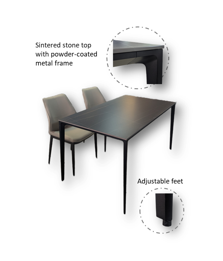 Create a darkly sophisticated dining setup with this Benito table, its classic and clean silhouette with detailed Marquinia surface texture. Sturdy metal frame ewith premium power-coated finish for superior resistance to rust, scratches and fading, it’s a stylish piece you’ll be proud to showcase, so expect to host more dinners and events at yours.